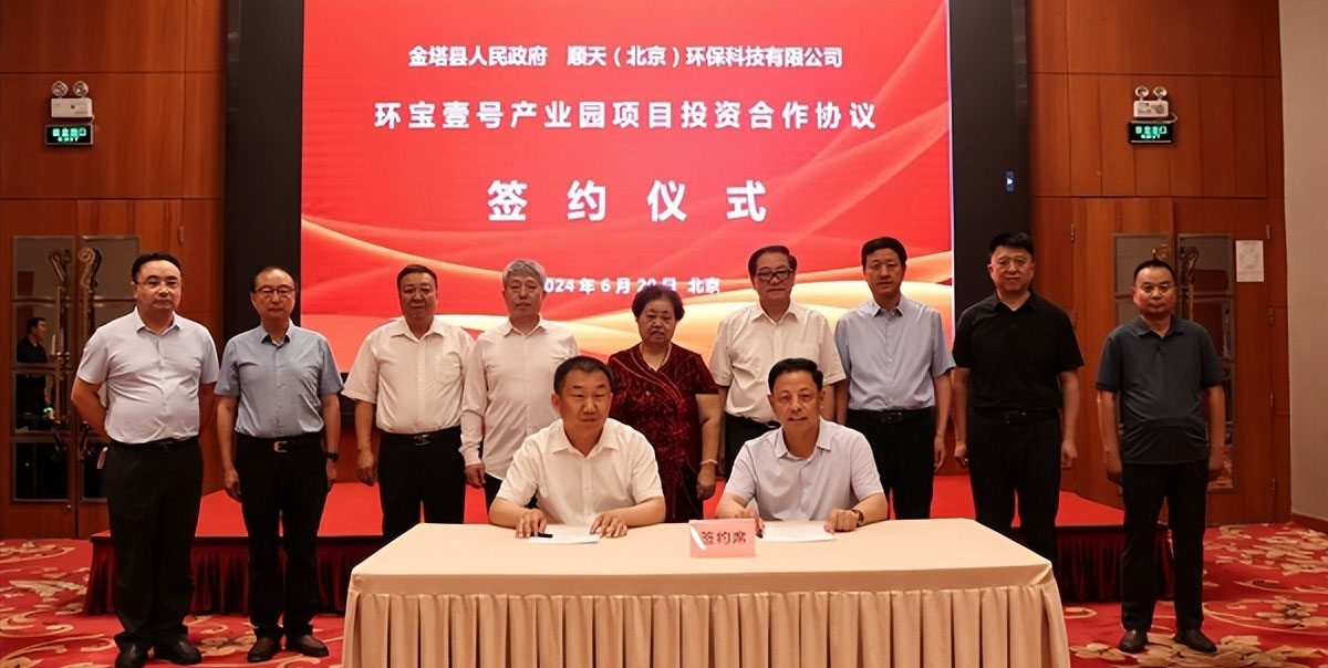 李巖副縣長(zhǎng)、甄成君董事長(zhǎng)分別代表金塔縣政府和順天(北京)環(huán)保科技有限公司簽訂《“環(huán)寶壹號(hào)產(chǎn)業(yè)園項(xiàng)目”...